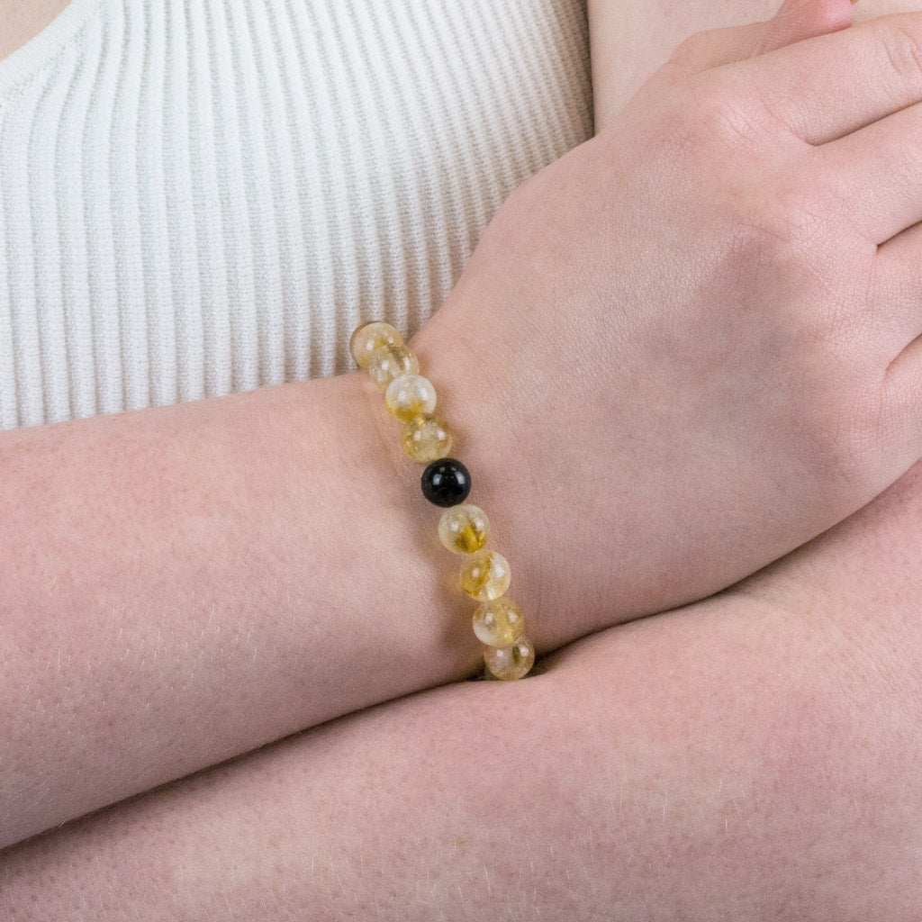 Large crystal masses that have been split up into smaller crystal shards and polished are what give the bracelet its silky, smooth surface and velvety blackness. This bracelet will not only look great in your collection but will shield you from negativity.