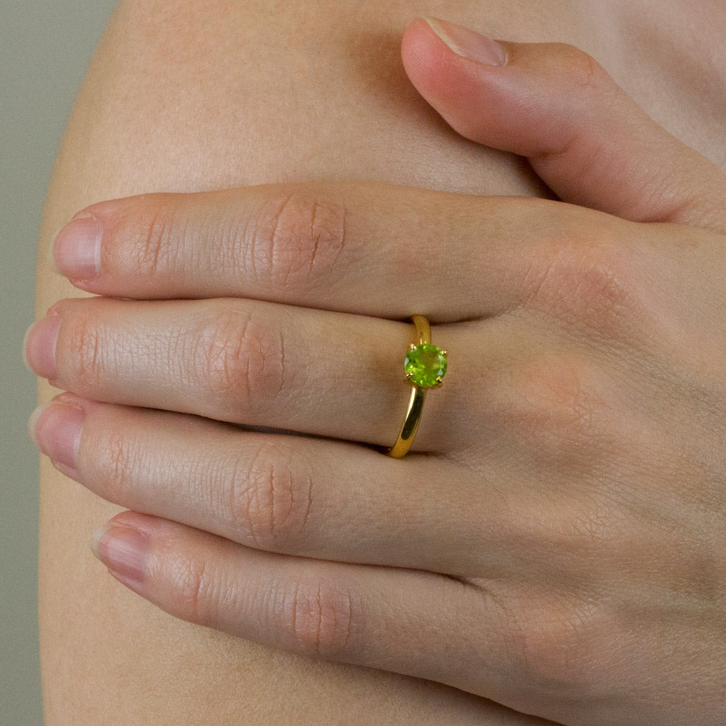 Yellow green vivid Peridot gemstone with a fiery sparkle, wear this juicy, fresh green gem to add a touch of luxury to your look. Peridot emits warm and friendly energy. Also known as the “gem of the sun”; Ancient Egyptians felt the warm glow of the sun’s energy through the vivid, green glimmer. This Peridot ring provides a shield of protection for its wearer and is an excellent healing stone that helps one strengthen and regenerate the body and mind.